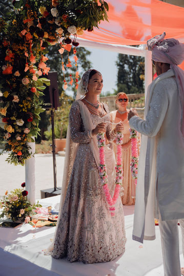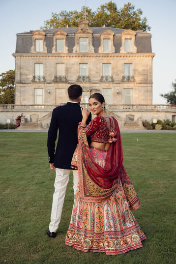 Magnifique mariage franco-indien haut en couleurs, célébré sur deux jours, entre traditions et scénographies contrastées.
